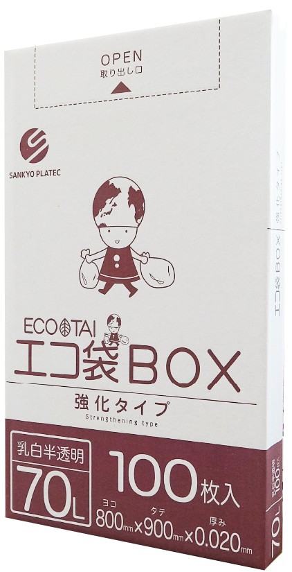 ごみ袋 箱タイプ 70リットル 乳白半透明 0.020mm厚(100枚×5箱)