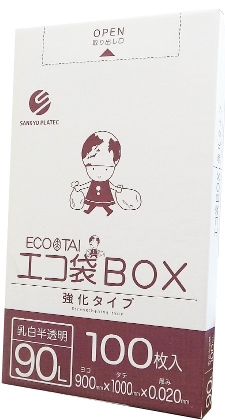ごみ袋 箱タイプ 90リットル 乳白半透明 0.020mm厚(100枚×5箱)