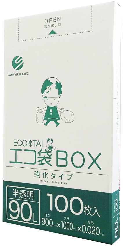 ごみ袋 箱タイプ 90リットル 半透明 0.020mm厚(100枚×5箱)