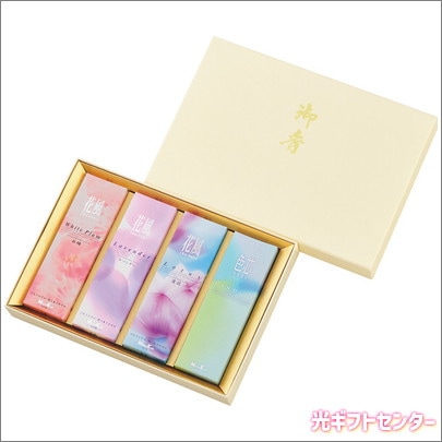 ご贈答/進物『お香のように心に溶け込む【かたりべ・飾れるフラワーボックスギフト~四種香アソート~】紙箱[微煙]』日本香堂
