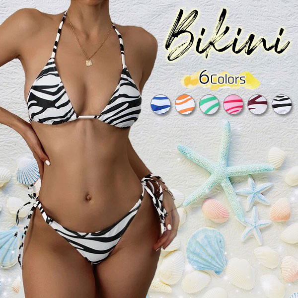 水着 ビキニ レディース 三角 スイムウエア ノンワイヤー 海 プール 海外 ホルターネック アニマル柄 ゼブラ柄 プール