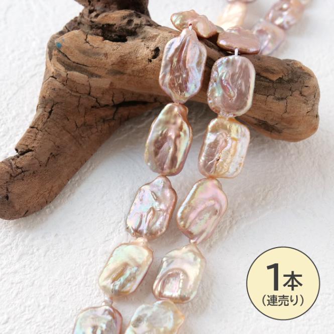 【有核 淡水真珠 約14×19mm】大粒 ホワイト レクタングル バロック型 天然パール 約38cm連 アクセサリー