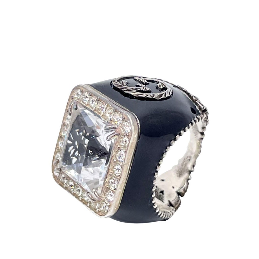 GUCCI グッチ ストーンリング 指輪 インターロッキングG Ag925 サイズ13 クリア ブラック シルバー