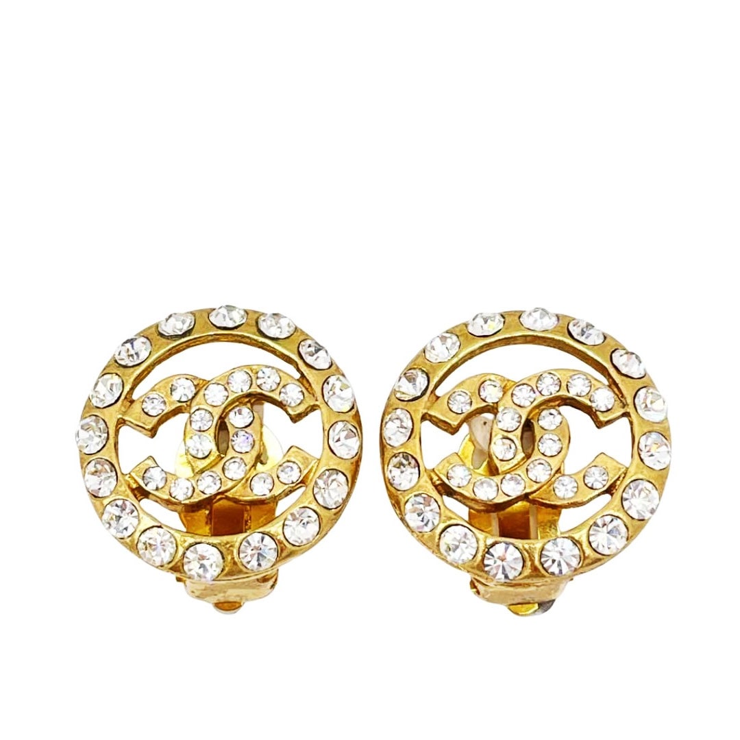 CHANEL シャネル ラウンドイヤリング ココマーク ラインストーン ヴィンテージ(1970年代頃製造)