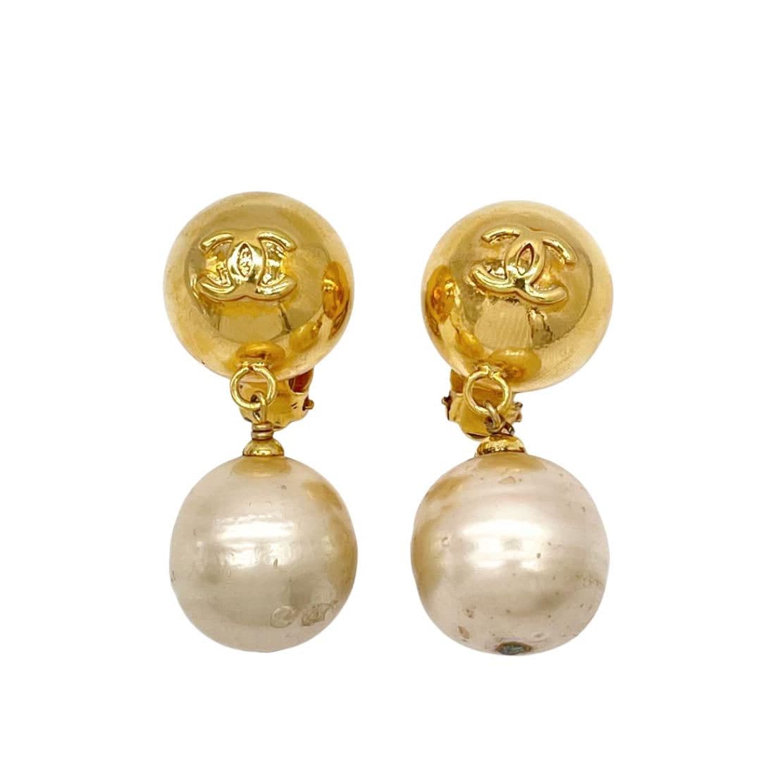 CHANEL シャネル ボールイヤリング フェイクパール 93P ゴールド ヴィンテージ