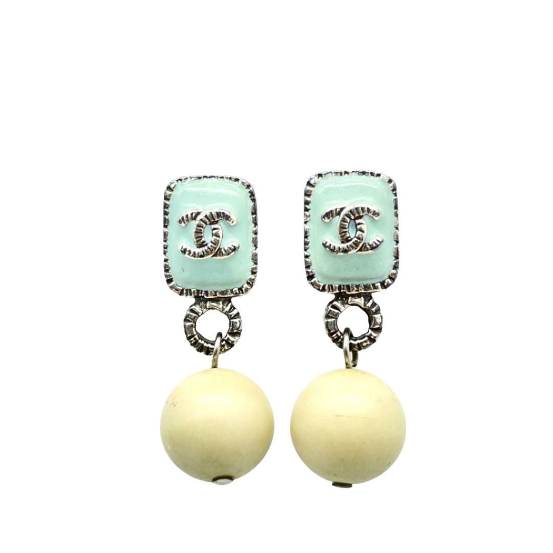 CHANEL シャネル スイングピアス ココマーク ライトブルー アイボリー シルバー 06C