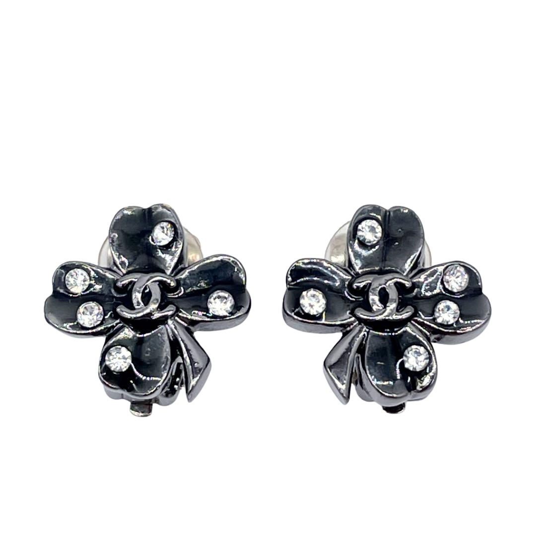CHANEL シャネル イヤリング クローバー ラインストーン 03A ガンメタリック