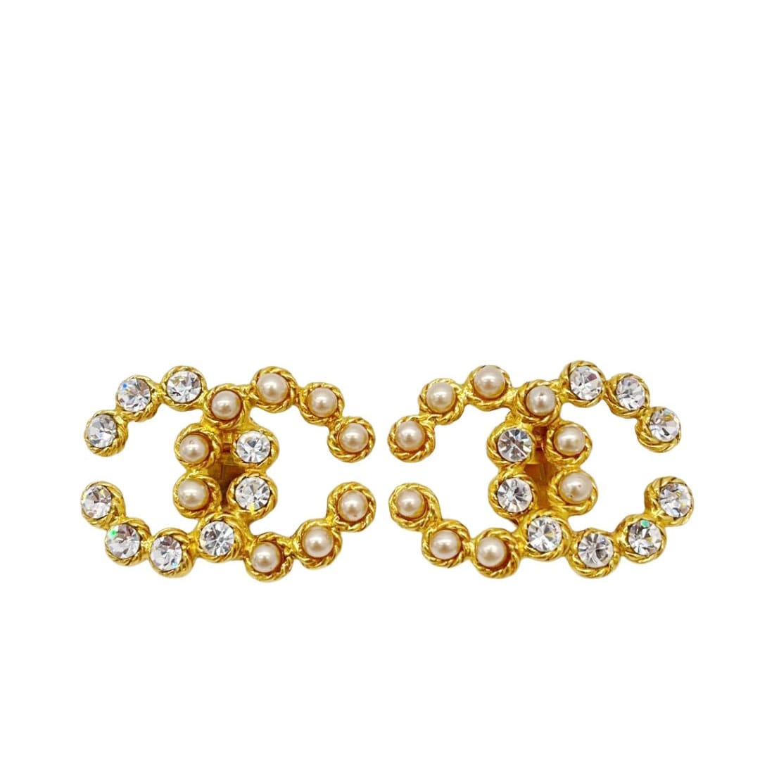CHANEL シャネル イヤリング ラインストーン フェイクパール ゴールド 28(1993年頃製造)
