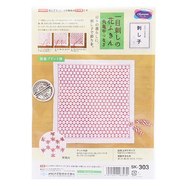 刺しゅうキット 『一目刺し 花ふきん 角亀甲つなぎ 白 SK-303』 Olympus オリムパス