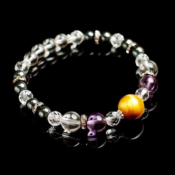 ゴールデンタイガーアイ×南アフリカ産アメジスト×ヘマタイトのMIX ブレスレット