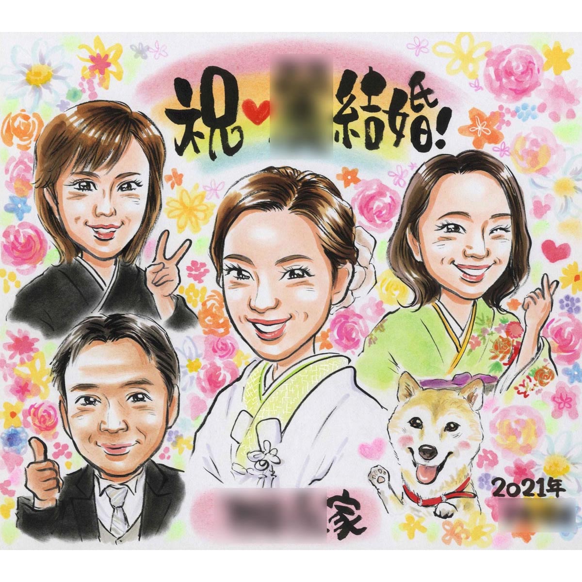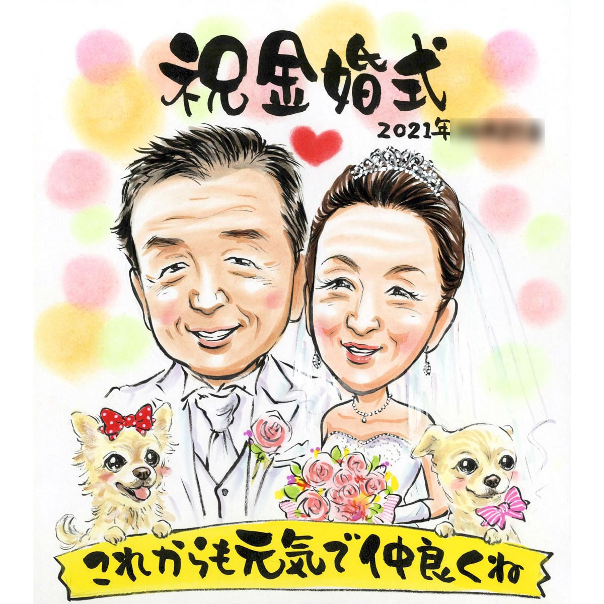 大切な日への感謝の気持ちを形に。家族から新郎新婦に贈る似顔絵サンクスボードで思い出を永遠に。ぽん太