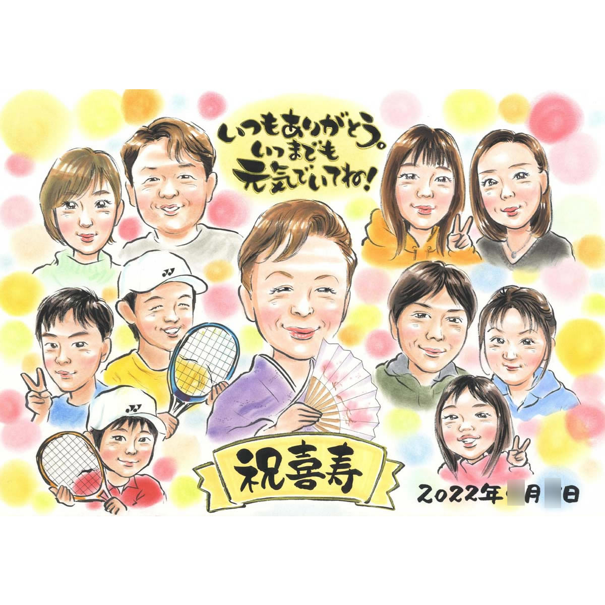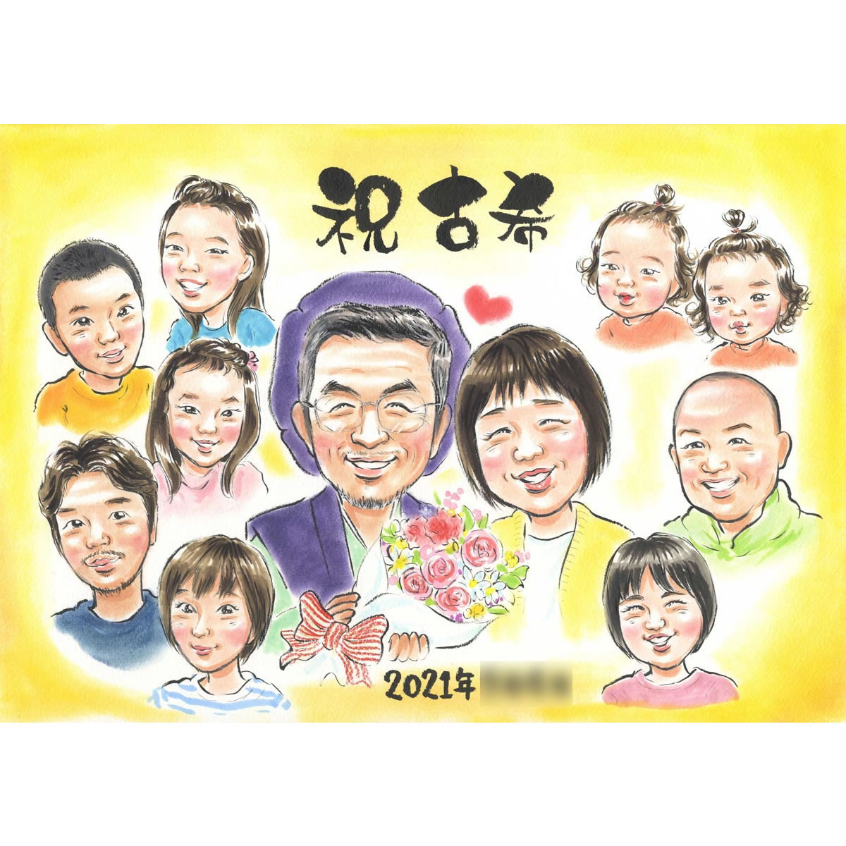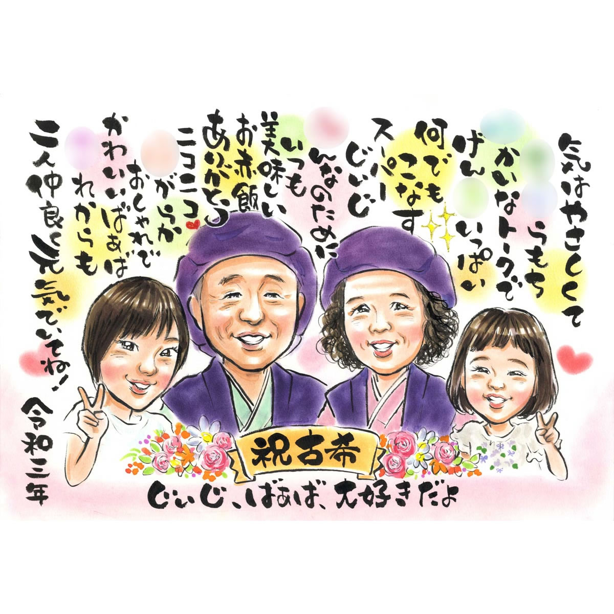 大切な人への贈り物は心に残るものに。家族の似顔絵でお祝いを彩ろう!長寿のお祝いにぴったりなプレゼントです。ぽん太