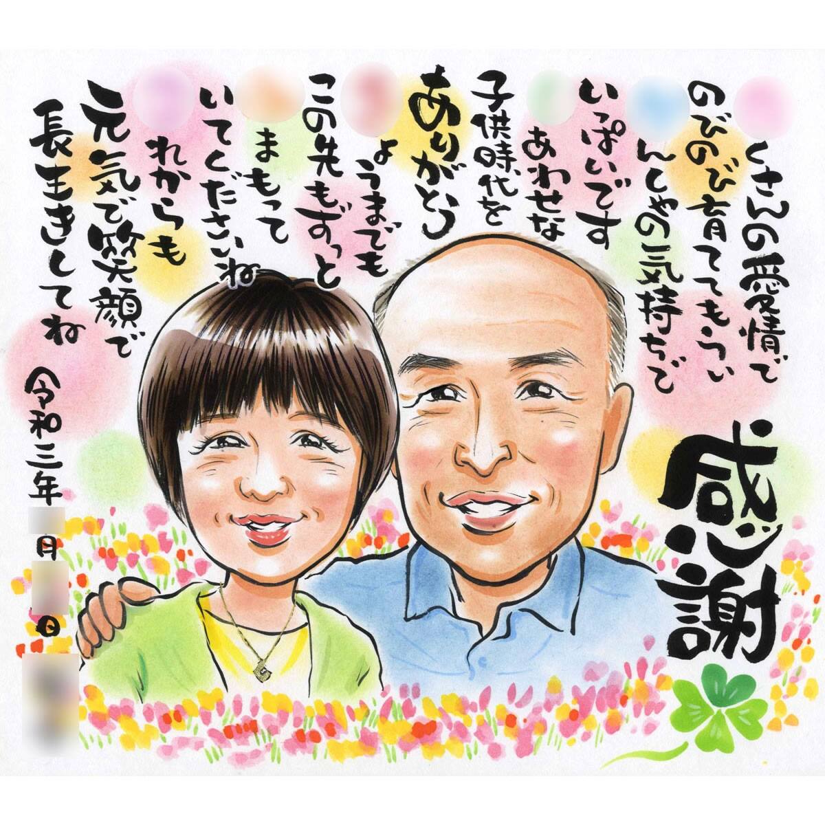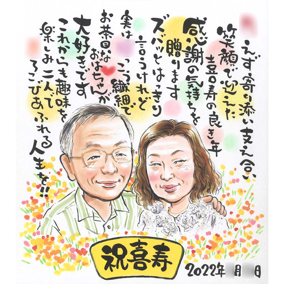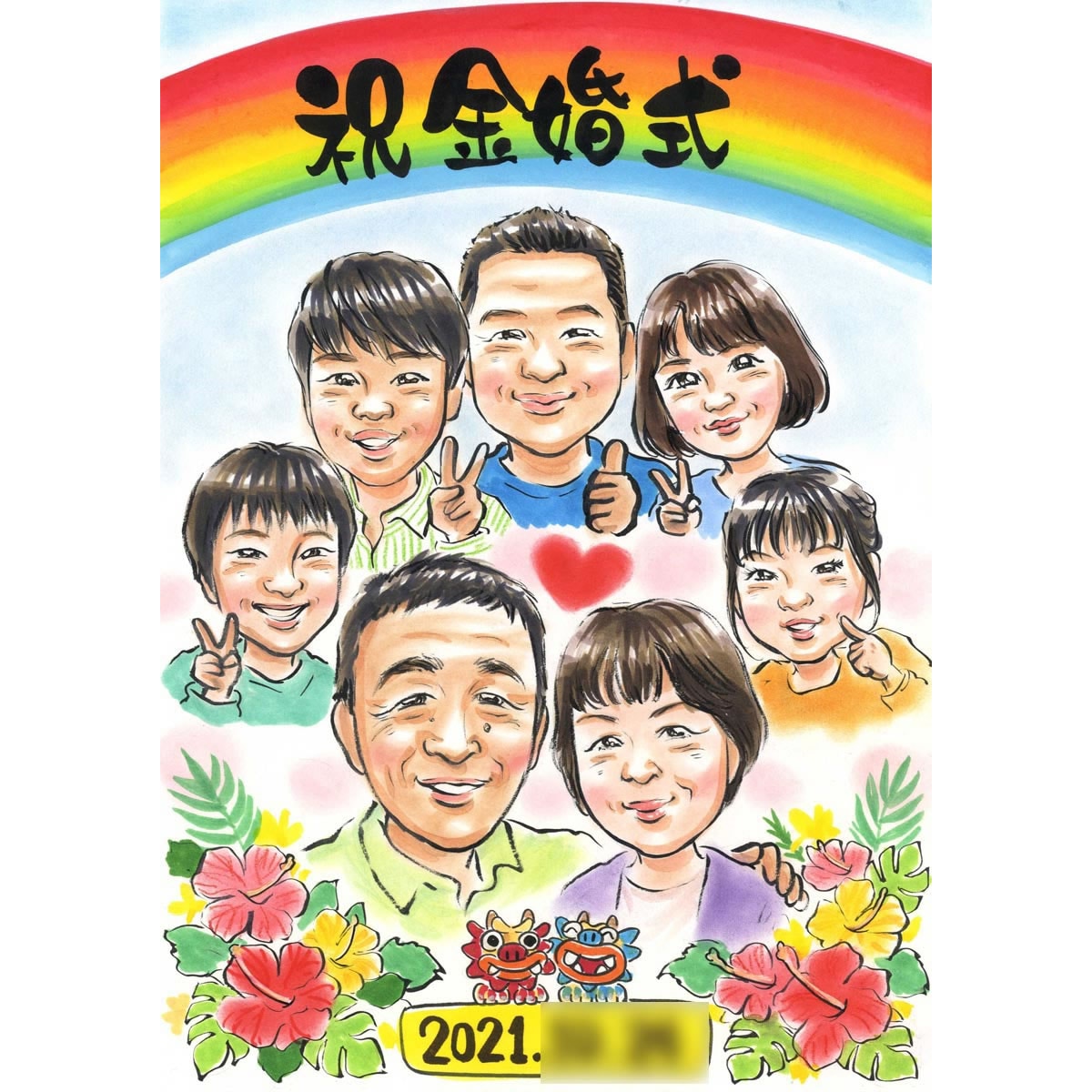 50年の愛を伝える、金婚式のお祝いに家族から贈る似顔絵ギフト ぽん太