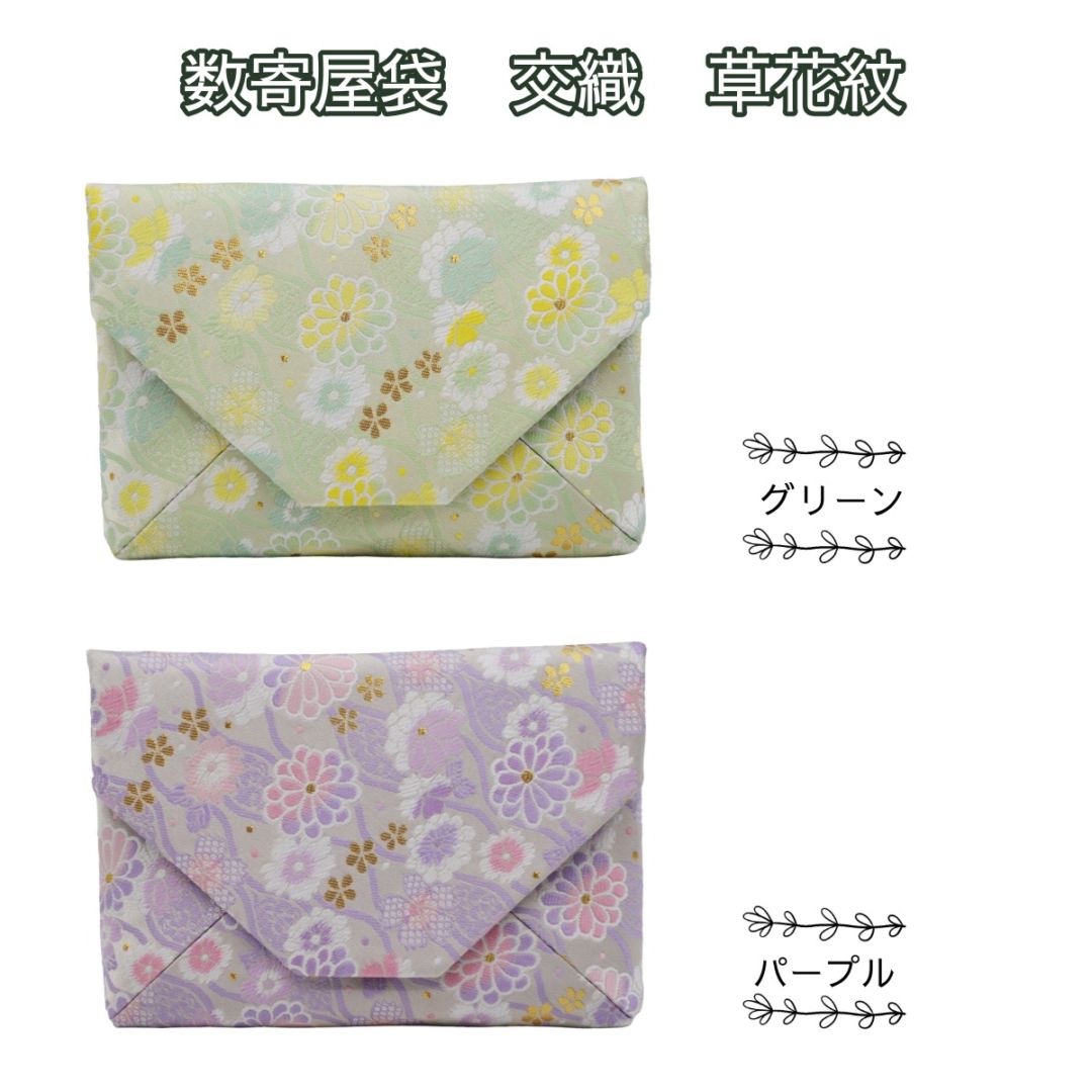 数寄屋袋 交織 草花紋 グリーン・パープル すきや袋(化粧箱入)