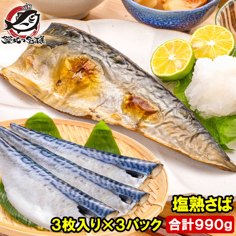 塩さば 塩サバ 骨抜き 骨なし 骨無し 3枚入り×3パック 990g前後 大サイズ 正規品