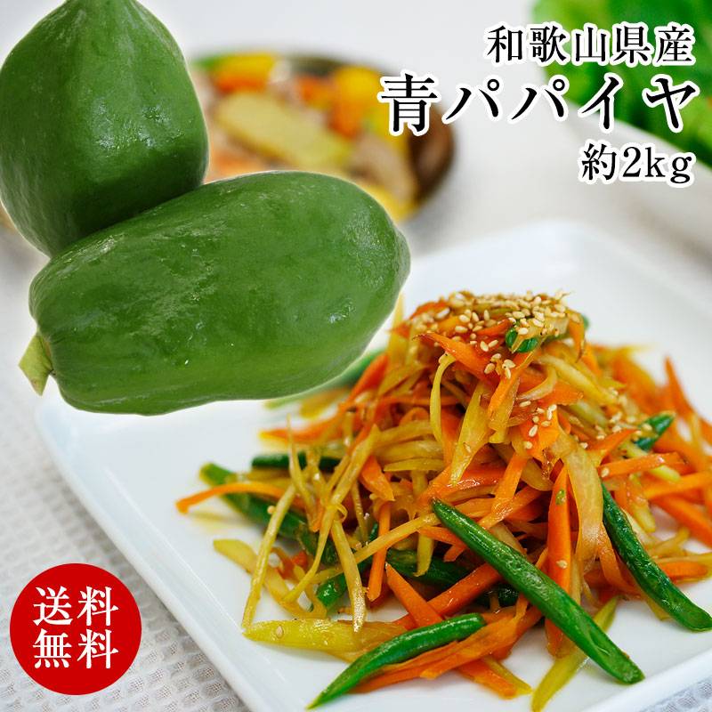 【早割特価!終了後3564円】 無農薬栽培 和歌山県産 青パパイヤ 約2kg(2玉) 【送料無料】※一部地域除 パパイン酵素たっぷ...