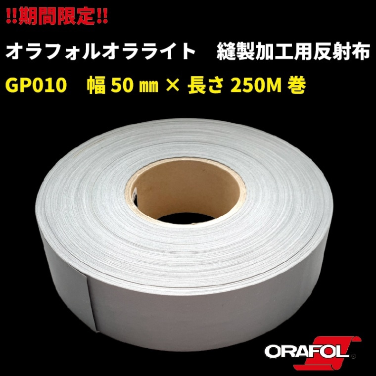 【期間限定サイズ!】オラフォル オラライト 衣類用反射材縫製タイプ GP010 ナイロン100% シルバー色 幅50mm×長さ25...