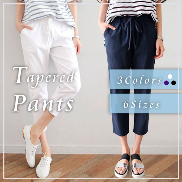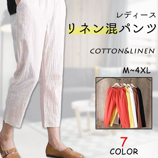 【セール】レディース テーパードパンツ 七分丈 リネン素材 快適 ゆったり クロップドパンツ 無地 シンプル