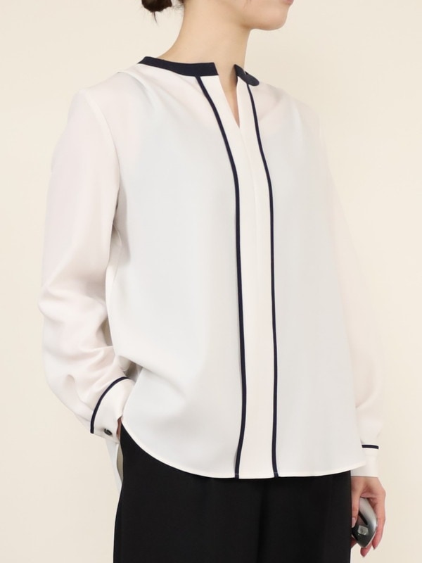 【Doneeyu】ストレッチツイルバイカラーブラウス