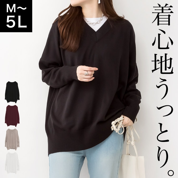 【3-10日で発送】Vネック ニット セーター レディース リブニット 長袖 トップス きれいめ シンプル 大きいサイズ M L ...