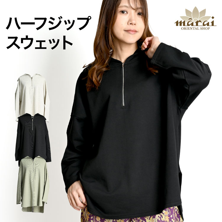 ハーフジップ スウェット レディース 長袖 トップス トレーナー ゆったりいきましょう。ハーフジップスウェット コットン 綿 ファ...