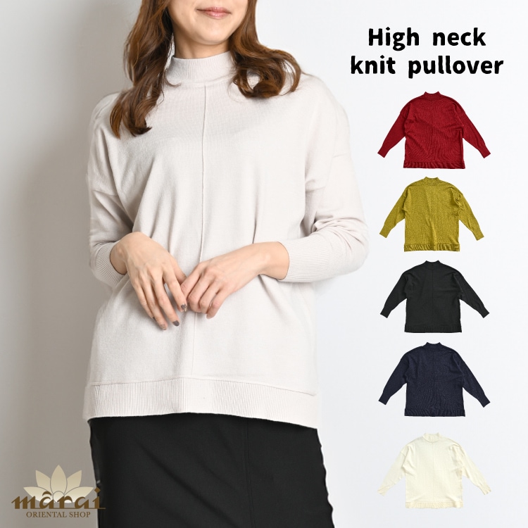 トップス レディース ハイネック 細見え効果でスッキリ魅せ。ハイネックニットプルオーバーニット プルオーバー リブニット 長袖 秋...