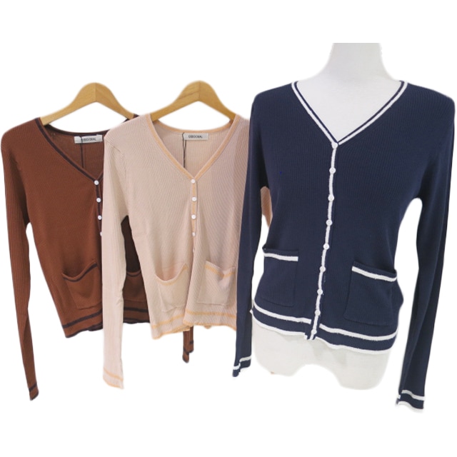 [30%OFF]COCO DEAL ブークレ配色リブポケットカーディガン