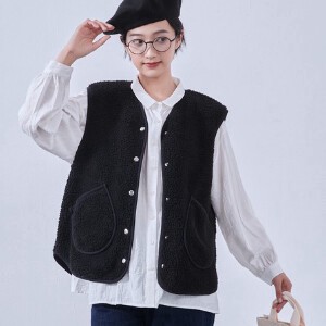 《2023秋冬》【On One\'s Own】縁取りパッチポケット・コージーボアベスト・裏地付き・秋冬アウター・シンプルベスト