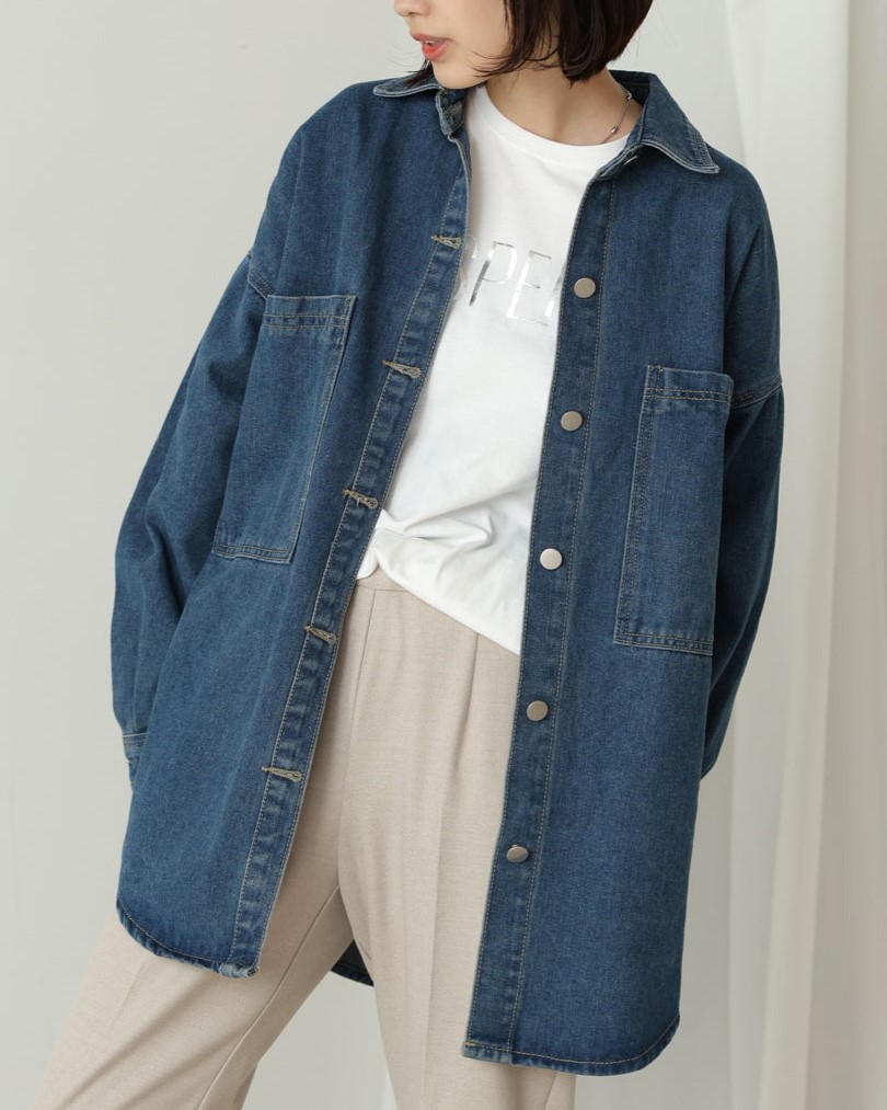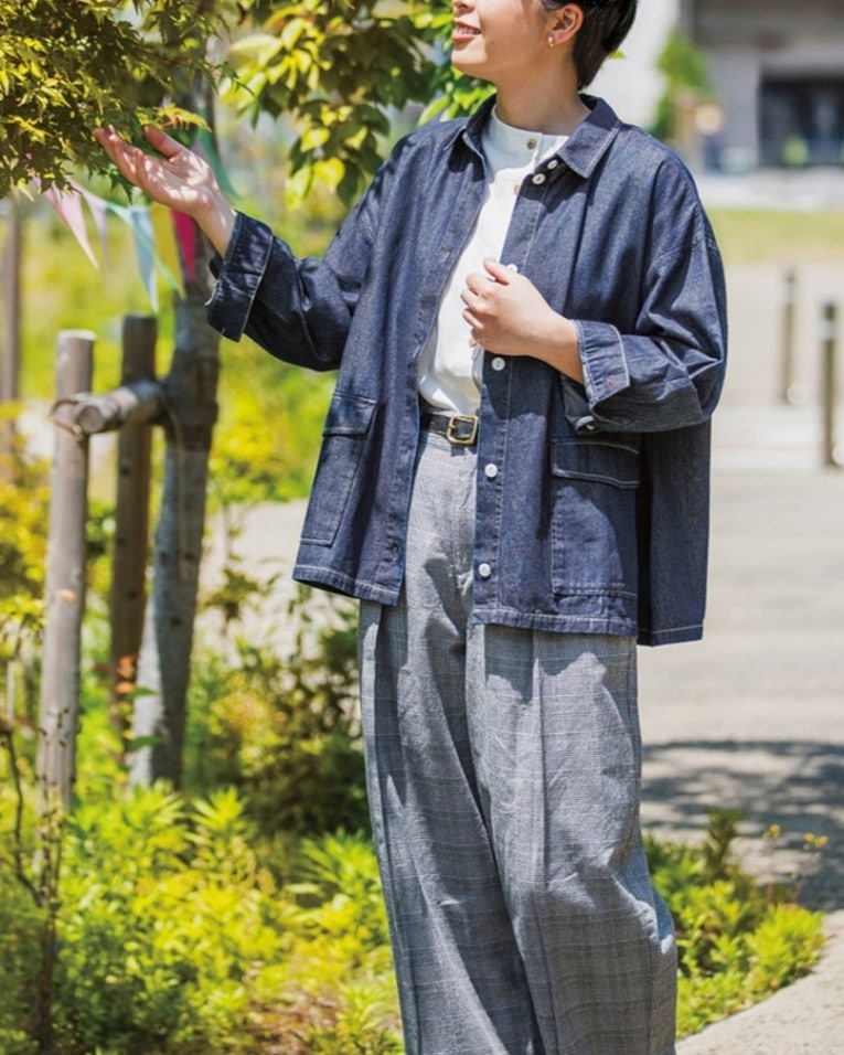 えりがわりブルゾン/ブルー/三河木綿刺し子織