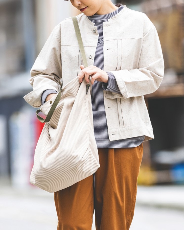 コーデュロイえりがわりブルゾン/ホワイト/遠州織物