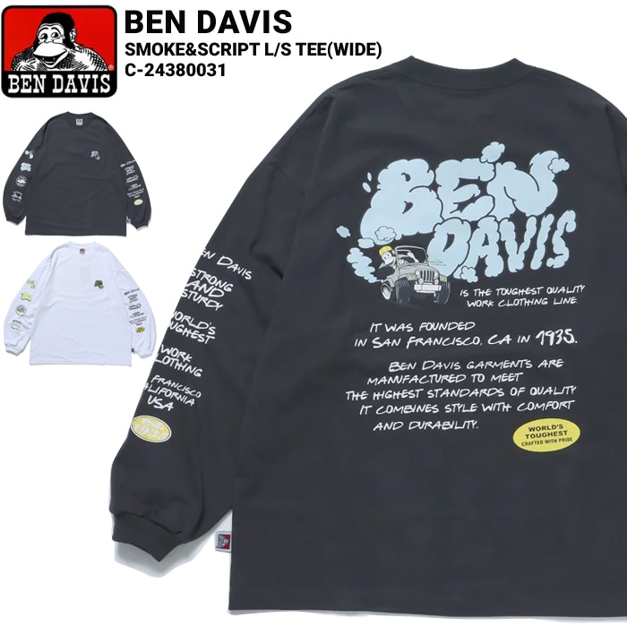 BEN DAVIS ベンデイビス ロンT SMOKE&SCRIPT L/S POCKET TEE (WIDE) 長袖 Tシャツ カ...