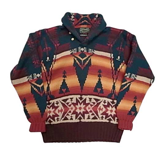 90\'s RALPH LAUREN ラルフローレン COUNTRY NATIVE PATTERN KNIT ショールカラーニット...