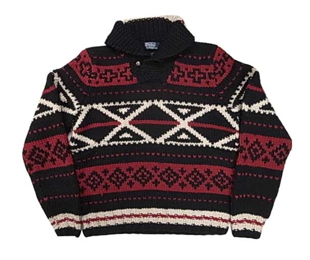 RALPH LAUREN ラルフローレン POLO HAND KNIT NATIVE SWEATER ショールカラー ニット ブラ...