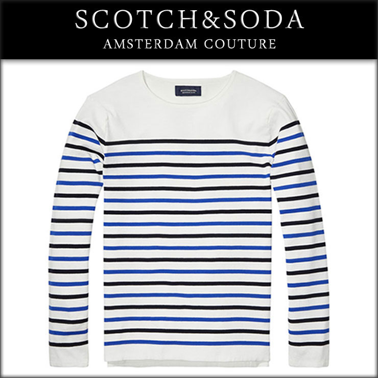 スコッチアンドソーダ セーター メンズ 正規販売店 SCOTCH&SODA Uni Blauw Breton Stripe Kn...