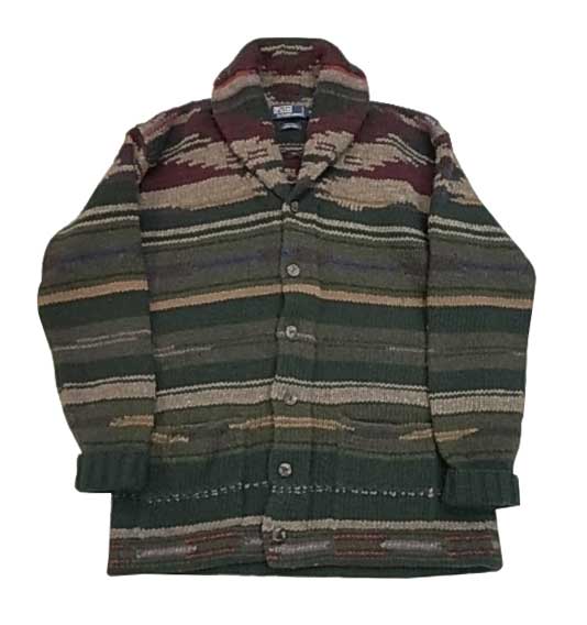 90\'s RALPH LAUREN ラルフローレン COUNTRY NATIVE PATTERN KNIT ショールカラーニット...