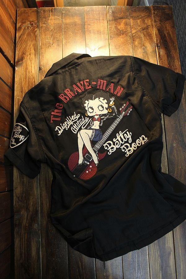 The BRAVE-MAN×BETTY BOOP ベティ BBB-2122 レーヨン半袖開襟シャツ ブラック