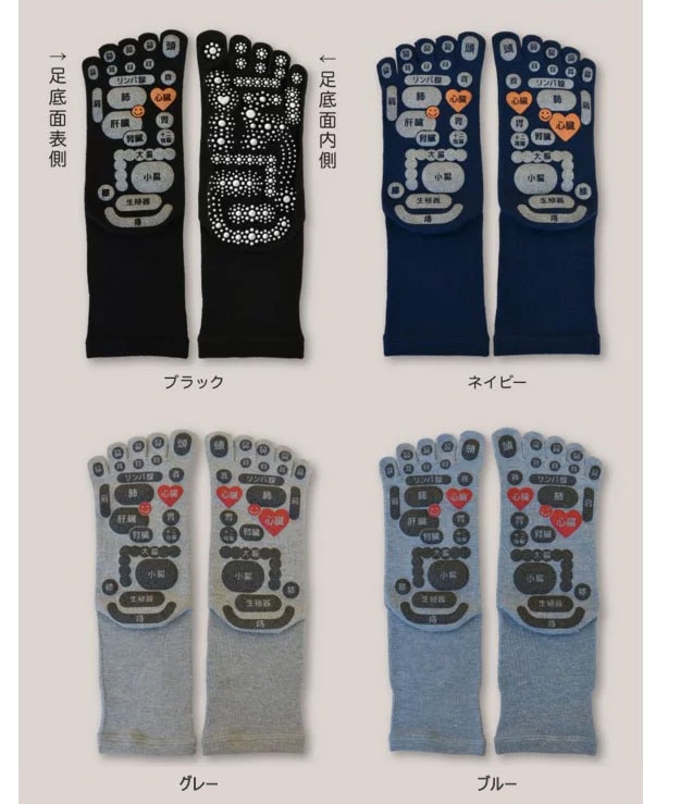 【日本製】TSUBOレシピPLUS 両面足つぼ5本指ソックス 25-27cm ブラック グレー ネイビー ブルー 足 フット つぼ...