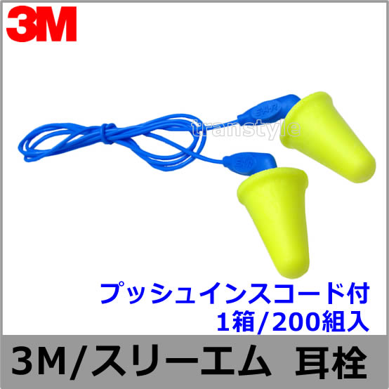 耳栓 3M プッシュインスコード付 (1箱/200組) 318-4001 正規品 スリーエム (遮音値31dB) 【睡眠 聴覚過敏...