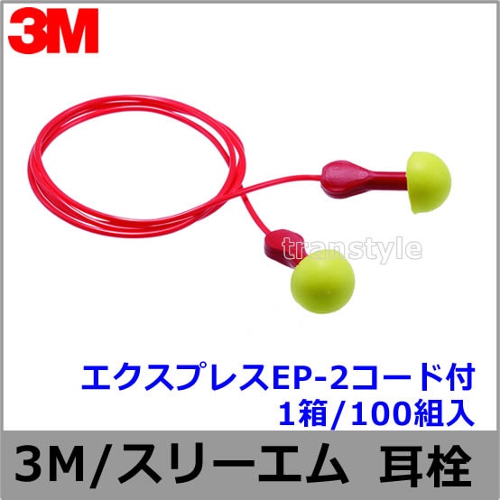 耳栓 3M エクスプレスEP-2コード付 (1箱/100組) 311-1115 ひも付 正規品 スリーエム (遮音値25dB) 【...