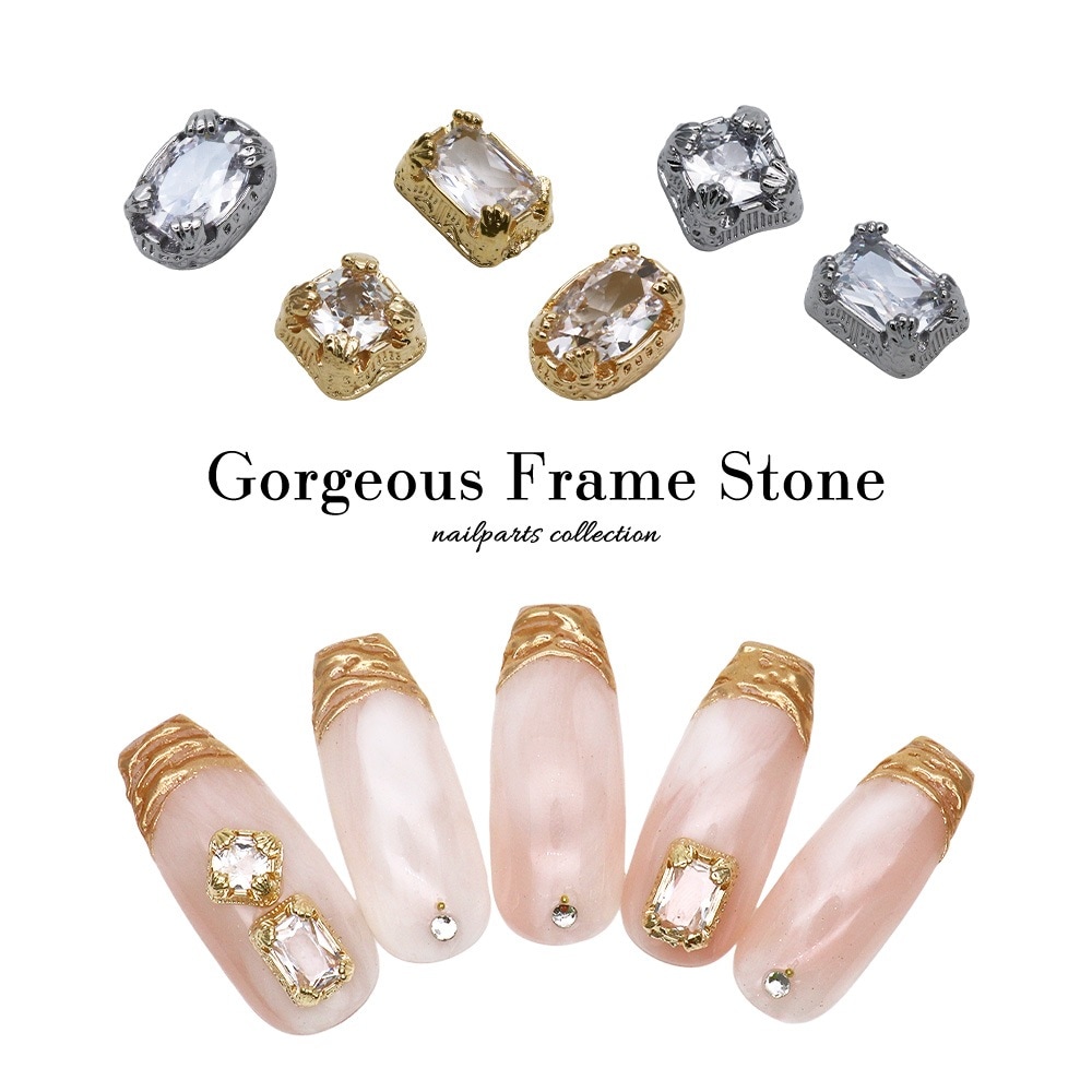【ネコポス送料無料】ネイルパーツ ジルコニア製 ゴージャスフレームストーンパーツ [ゴールド/シルバー] 全6種 2個入り