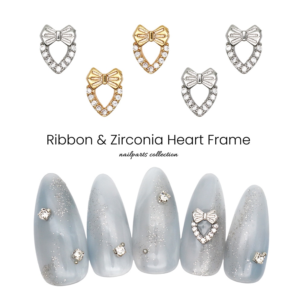 【ネコポス送料無料】ネイルパーツ ジルコニア製 リボン付きジルコニアハートフレームパーツ [シルバー 銀/ゴールド 金] 全2色 ...