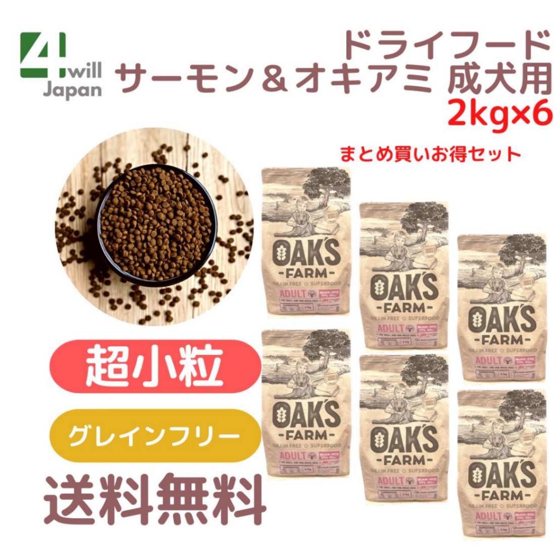 OAK’S FARM サーモン&オキアミ 成犬用 超小粒 2kg×6個 (賞味期限 2026年6月30日)