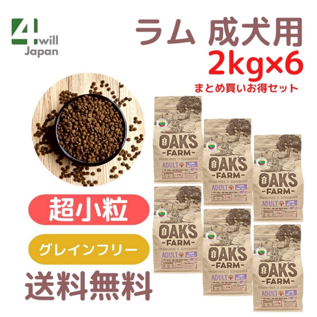 OAK’S FARM ラム成犬用 超小粒 2kg×6 (賞味期限 2026年5月31日)