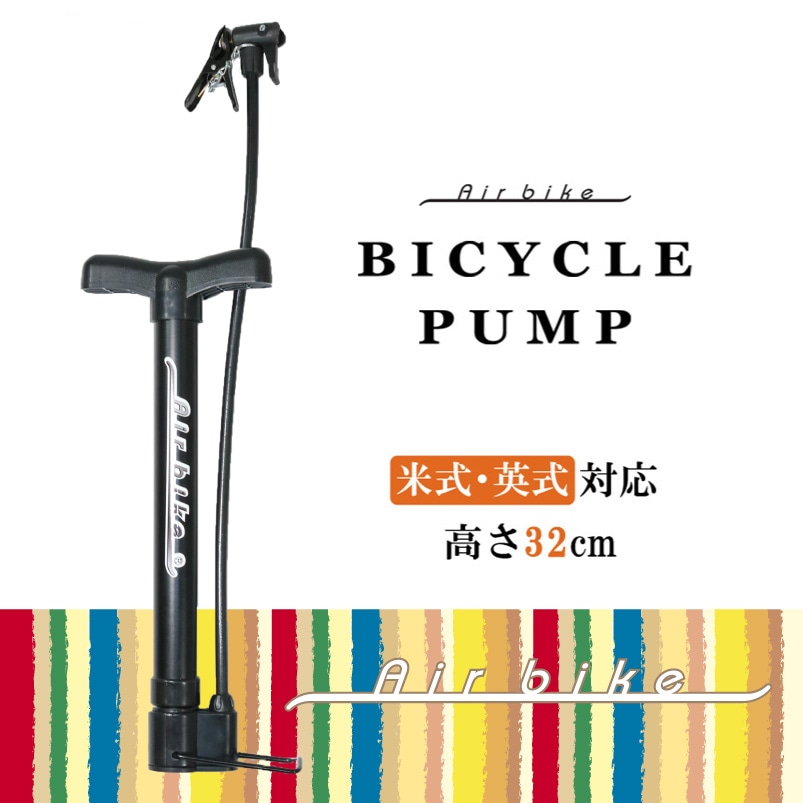 自転車 空気入れ 携帯用に便利!コンパクトサイズ320mm Air bike フロアポンプ(米式・英式バルブ対応)