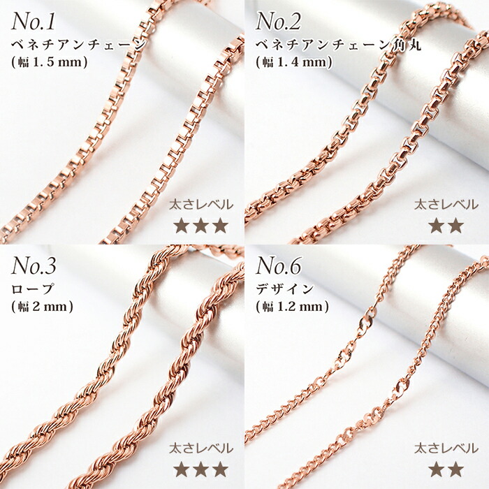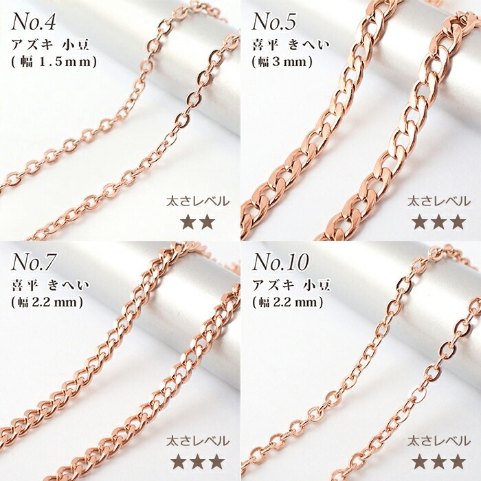 アレルギー対応 ステンレス サージカルステンレス製 ネックレスチェーン 金具付【約45cm ピンクゴールド】No.1~16のペー...