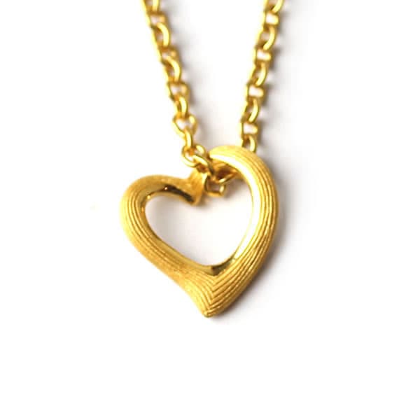 【即日お届け】オープンハート(幅10.5mm) 純金ペンダント(SV925チェーン付き)