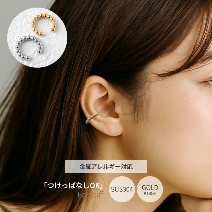 【SUS304ステンレス製】イヤーカフ 片耳売り ビーズ風デザイン 金属アレルギー対応