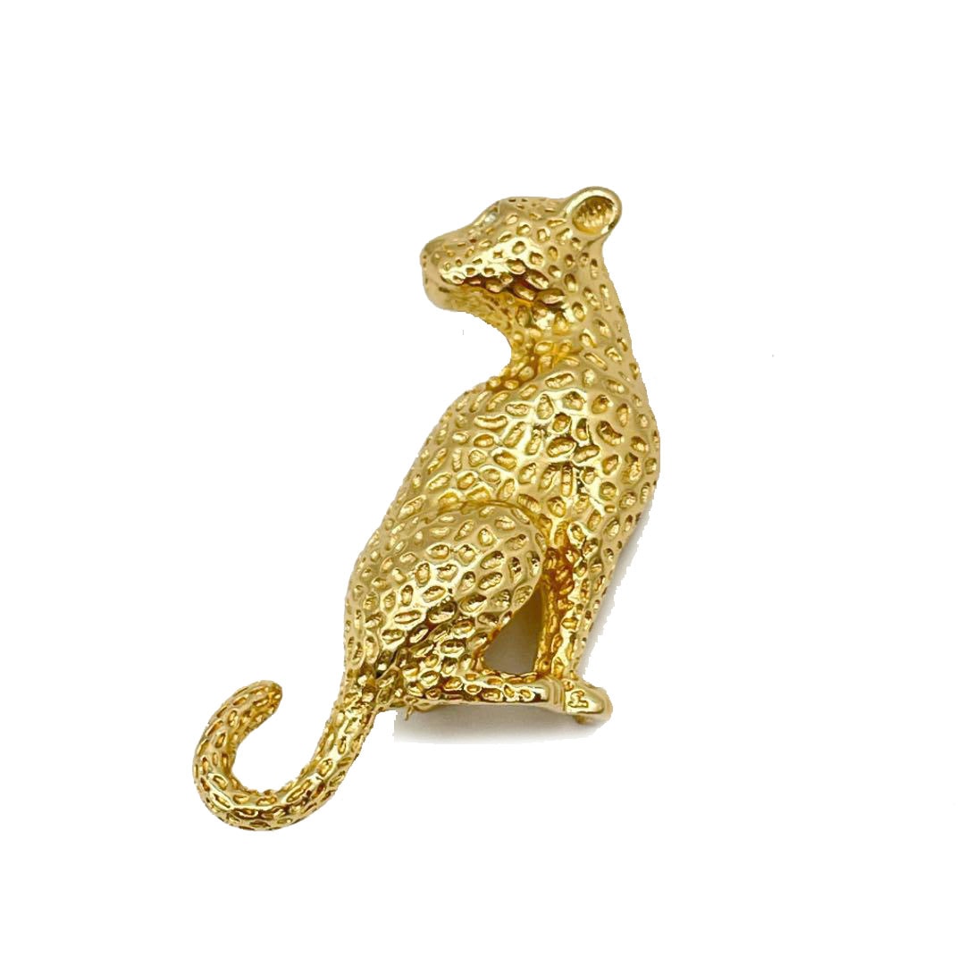 Christian Dior クリスチャンディオール ブローチ レオパード 豹 メタル ラインストーン ゴールド ヴィンテージ