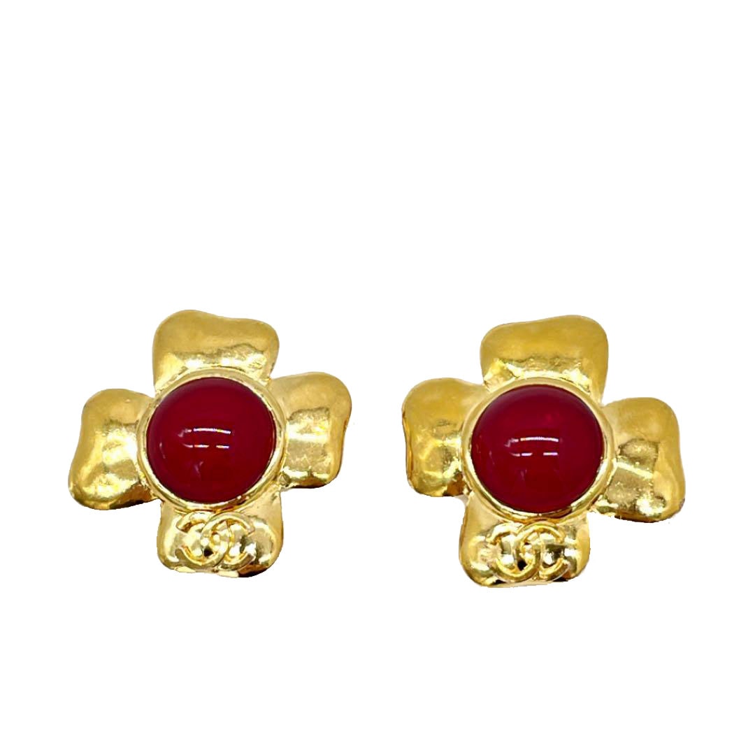 CHANEL シャネル イヤリング グリポア 四つ葉モチーフ 赤石 レッド ゴールド 97P