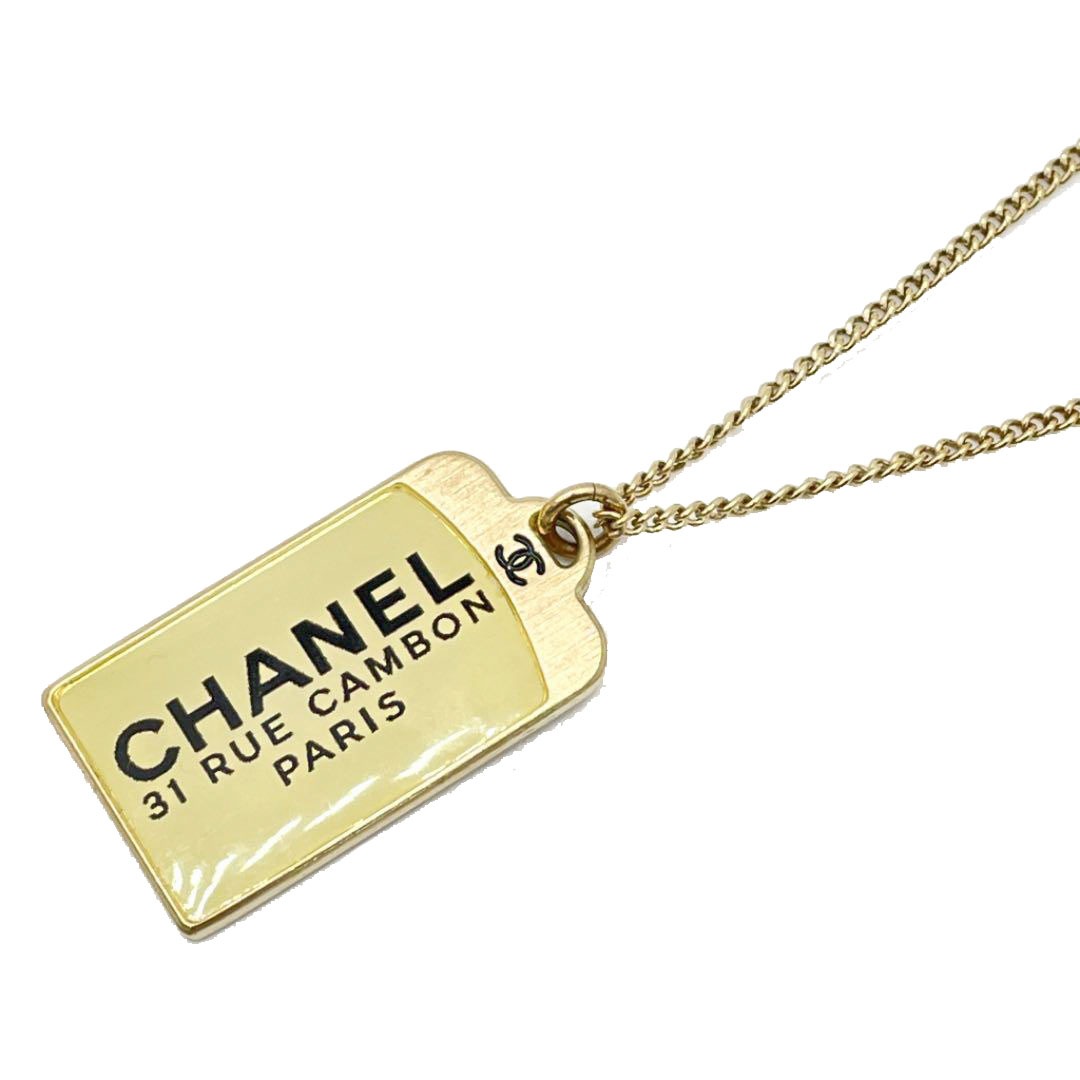 CHANEL シャネル ロングネックレス カンボン プレート ゴールド 07C